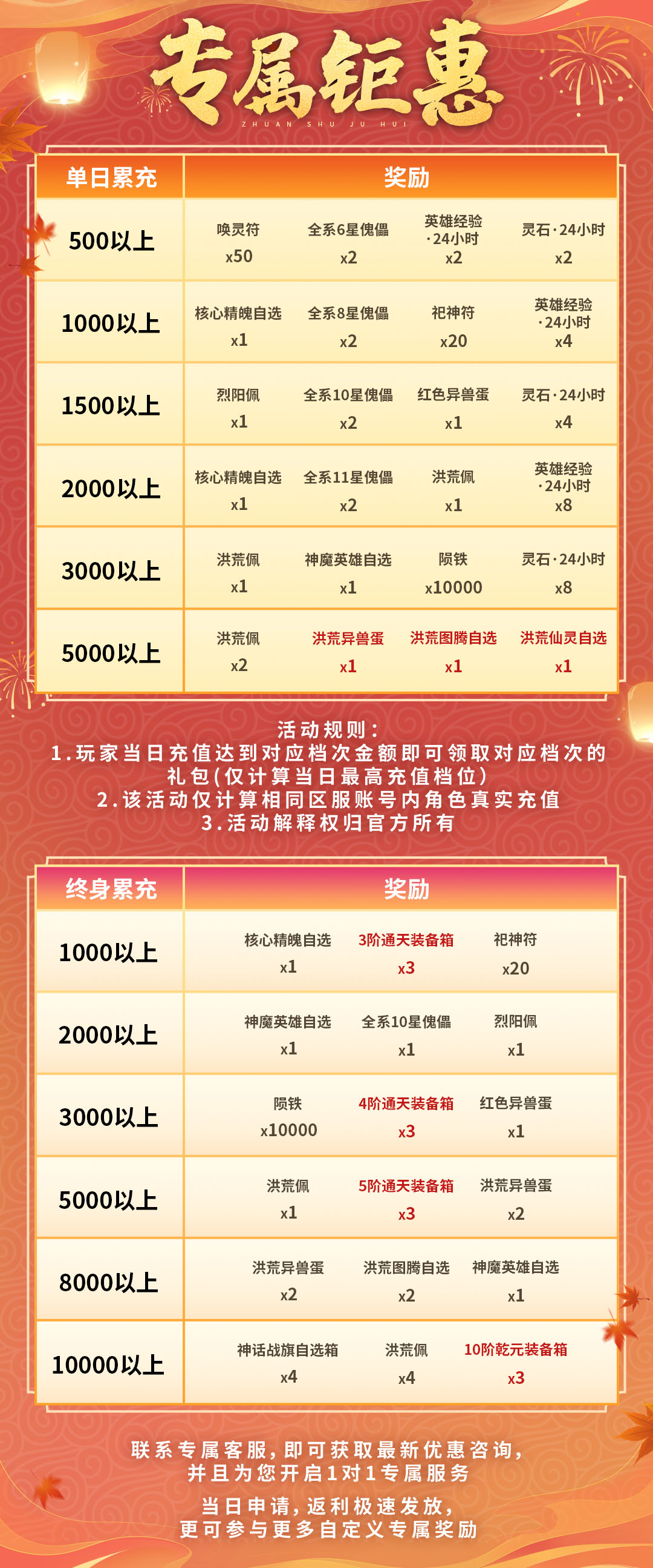 单日5000元档:(无法和任何其他线下返利叠加,包括大额充值额外送的灵石等等)